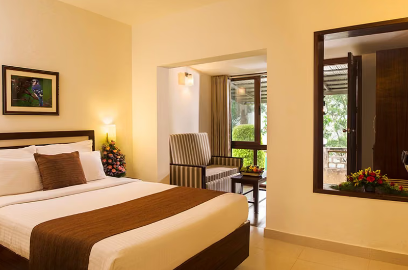 Abad Copper Castle features 40 elegantly appointed rooms, each meticulously designed to maximize the views of the valley. The architecture emphasizes large windows and balconies, ensuring that the lush greenery of the Idukki district is always visible.
