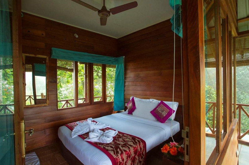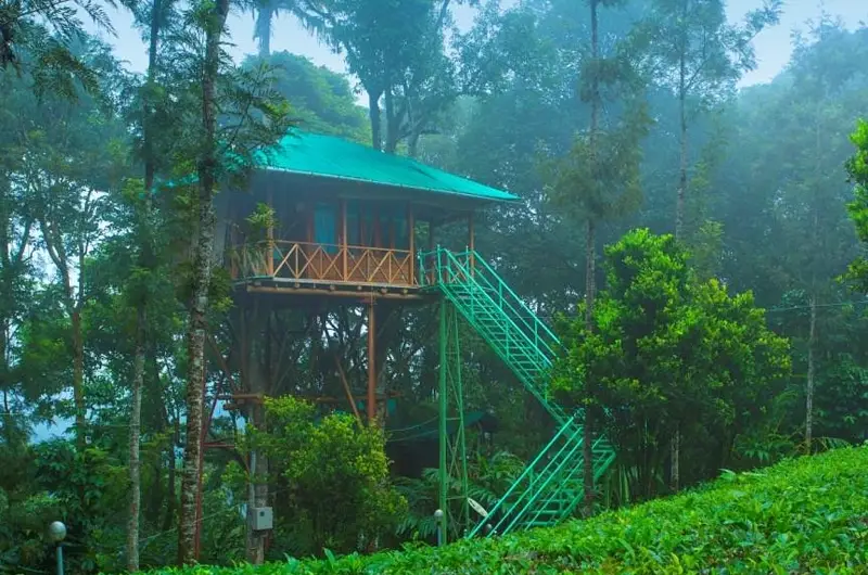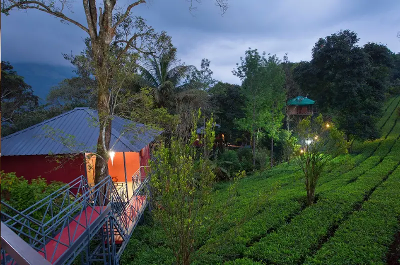 1. Luxury Tree Houses (The Highlight): Standing tall at 60 feet above the ground, the resort offers four exclusive Tree Houses. Accessible via hanging bridges or wooden staircases, these self-contained units offer 360-degree views of the plantation. They are equipped with modern bathrooms, Wi-Fi, and balconies, making them the most sought-after tree house stay in Munnar.