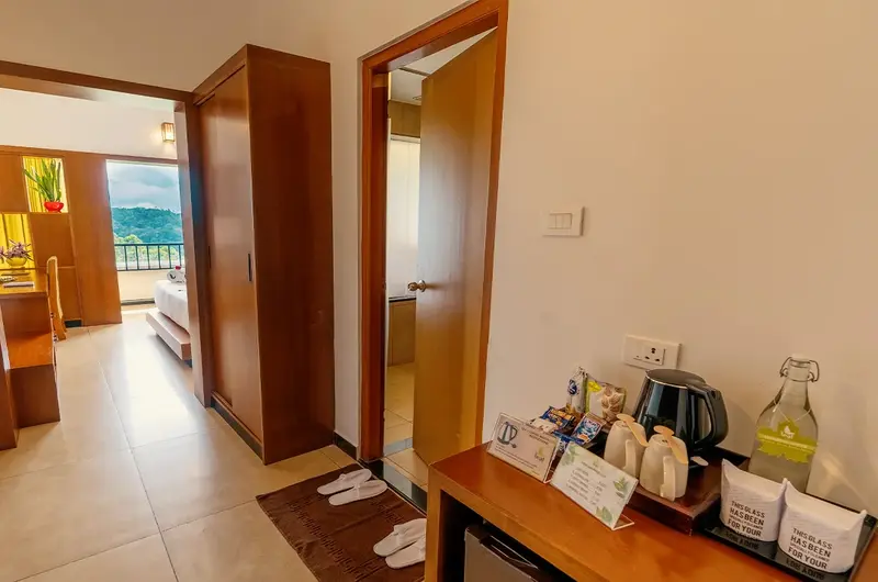 - Modern Mountain Aesthetics: Large glass panels, warm wooden accents, and contemporary decor that complements the rugged beauty of the Idukki hills.