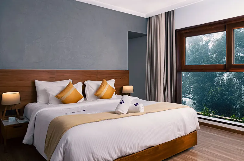 Spacious rooms offering stunning panoramic views of Munnar’s valleys and mist-covered hills.